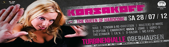 Am 28.07.2012 kommt Korsakoff nach Oberhausen. Ursprünglich war die Party im Cosmo Club geplant aber da die Ankündigungen der Besucher jetzt schon zeigen, das der Club aus allen Nähten platzen würde, wird die Party in die Turbinenhalle verlegt.