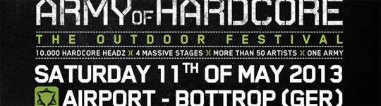 Army Of Hardcore ist das Event das regelmäßig mehrere tausend Besucher aus ganz Europa nach Oberhausen zieht. Am 11. Mai 2013 geht die Army Of Hardcore einen Schritt weiter in die Nachbarstadt und findet zum ersten Mal als Open Air Rave auf einer Freifläche am Flugplatz Schwarze Heide Bottrop / Hünxe statt.
